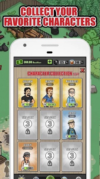 超过30个字符卡收集!解锁新角色,忙着打开箱子或殴打老板。升级字符,赚取更多的钱,增加利润!