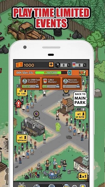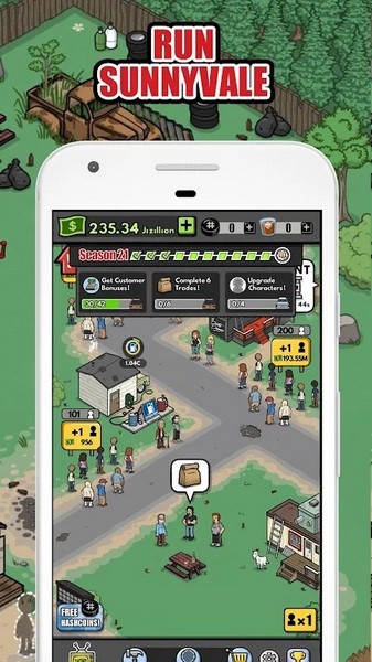 管理和收集现金支付您的业务。收集酒水和卡片来升级拖车公园中的建筑物。懒得工作?当你不能玩的时候雇佣工人来经营你的企业。