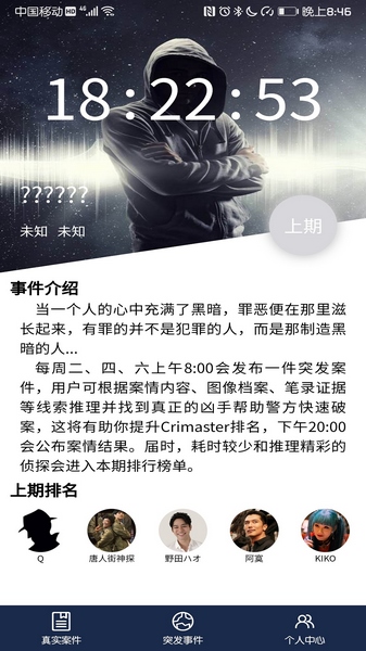 这一块是这款游戏最吸引我的地方,在这里就可以满足自己对于侦探推理的渴望。每周二和周六更新,有时会拖更或者取消,真是折磨人(案件太少,还没有保证,这对入坑的玩家是很难受的哈哈哈),希望官方能够抓紧完善。
