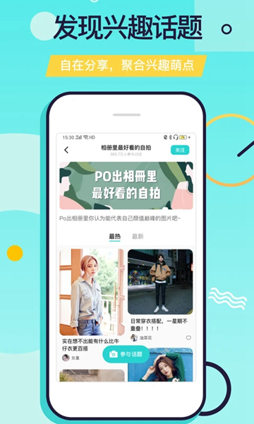 4、这里拥有形形色色的用户,可以让你按照兴趣轻松的寻找好友;
