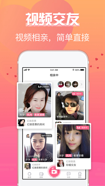 珍婚作为一个面对面视频征婚相亲婚恋交友平台,大大提交了相亲的速度和成功率,由红娘主持,通过线上视频聊天的方式帮助男嘉宾和女嘉宾相互认识了解,喜欢后互相加好友并进入深入了解。平台中存在上千红娘为男女性用户提供相亲服务。