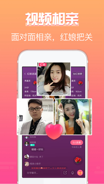 视频相亲 -- 由红娘主持,三人相亲房间,快速了解