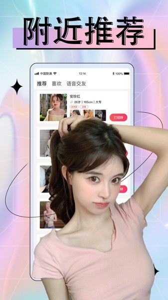 附近欢聊,汇集同城单身男女在线,陌生聊天、交友、恋爱的社交app。
