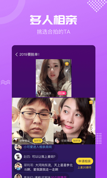 1、随时随地单身交友,多人视频相亲互动