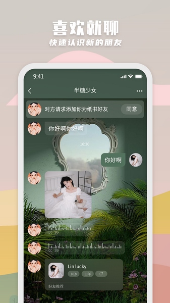 2、分享生活美好瞬间的匿名社交软件,可以在纸书建立各种各样不同的生活,通过匿名交友方式认识更多新朋友;