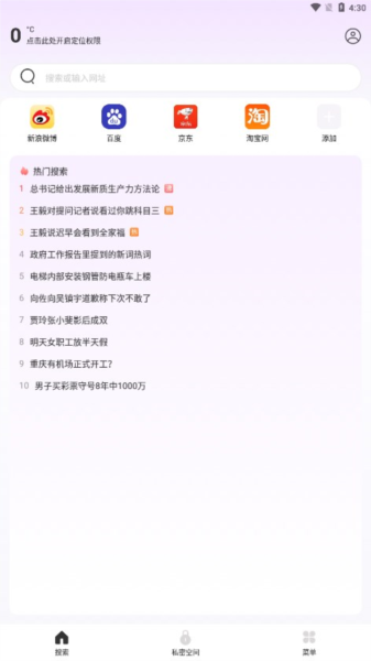 另外,私密空间和密码加锁的功能让我觉得特别安心,重要数据放在这里 totally safe。首页设计得很清爽,没有广告,搜索也很快,热门新闻一目了然。经常访问的网站还能直接添加到首页,方便又快捷。更新后的版本加载速度更快,还新增了个人空间功能,真的很贴心。