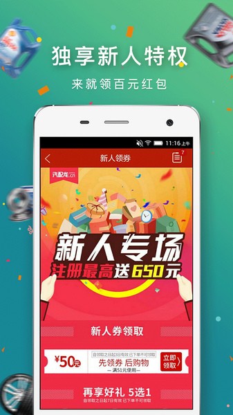 新认证用户免费获得百元红包,直接充当现金使用,周周有新活动,特价好货每天不同,疯狂星期三、超级采购王、会员日、周周抢红包玩转不停,不定期发大面额现金券,每天都要上汽配龙逛逛,千万好货,一站购齐。