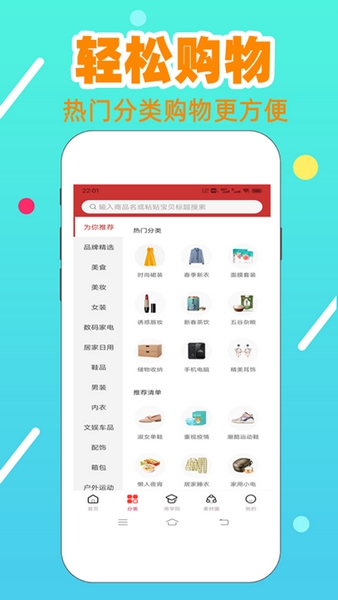 淘金者APP是一款主打优惠购物省钱的软件,其对接了生活中各项所需的服务,例如吃喝玩乐购等,汇集了全行业优惠信息,更为用户带来京东、拼多多、天猫等各大电商网站的优惠券,且品类齐全,用户可以根据分类表或者搜索功能快速查询想要的产品,购物轻松省!此外,用户还能将平台优惠进行分享,轻松获取返佣,轻松赚零花!