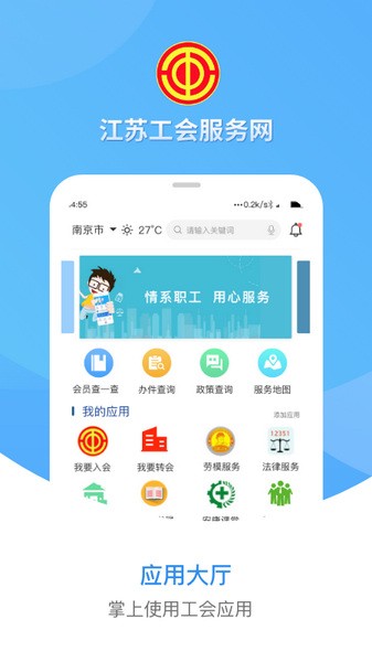 江苏工会APP是一款专为江苏省职工打造的服务软件,旨在提供便捷实用的工会相关服务。无论是法律援助、就业帮助还是教育培训,这款APP都能满足用户需求。界面设计简洁直观,操作起来非常方便。