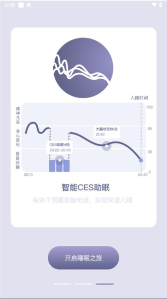 3、入睡分析:通过EFG脑波监测,精准识别大脑状态,可视化入睡数据。
