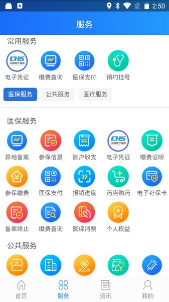 医保个人账户信息查询、居民医保缴费、医保消费查询等。