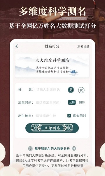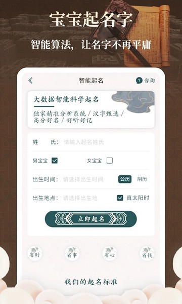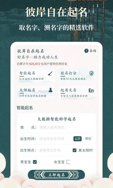 拥有智能的取名算法,按照用户提供的资料快速匹配合适的名字