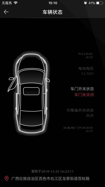 4.车辆状态:车主可在手机APP实时查看爱车剩余油量、车门开关状态等信息,实时了解爱车信息;