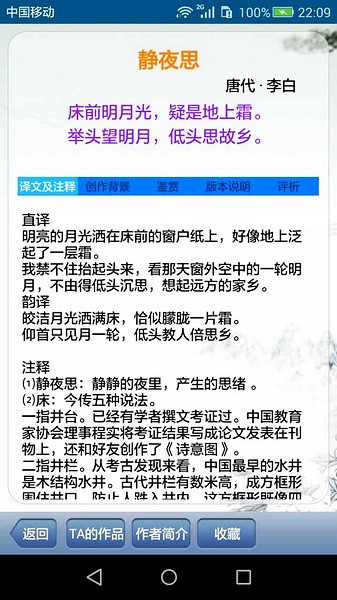 对古诗词的作者进行了介绍,可以了解作者的生平事迹