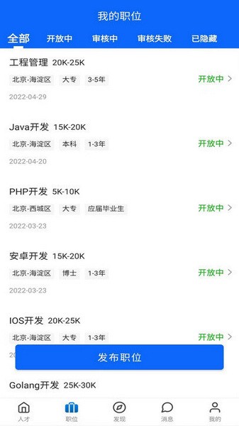 实用的人力资源软件,软件内为用户提供各种工作岗位和信息,用户可以根据自己的需求查看对应的岗位,帮助用户求职帮助企业招聘,非常的方便实用,快来下载看看吧!