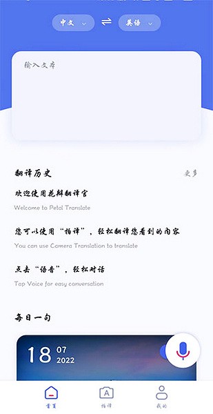 花瓣翻译官app是由华为官方出品的一款多语言智能语音翻译应用,软件界面非常简约,里面所有的功能全都一目了然,让用户们可以上手更加轻松。软件内支持中文、英文、日语、韩语、德语等数十种主流的语音翻译,并且包含了语音、文字和智能识别的翻译方式,识别率非常高,而且翻译后的数据十分准确,还支持下载多语言离线翻译库,让没有网络时也可以轻松翻译,致力于用户提供贴心的翻译服务。