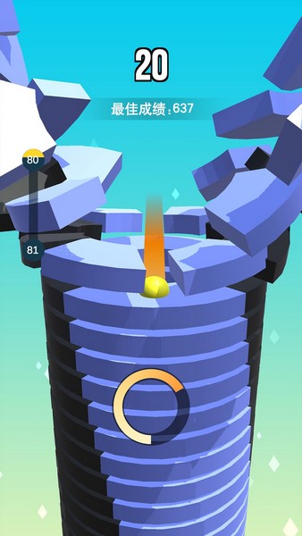 点击屏幕按住不放,让弹球一层一层地击穿彩色砖块,嗖嗖嗖地直达地面,就可以过关了!