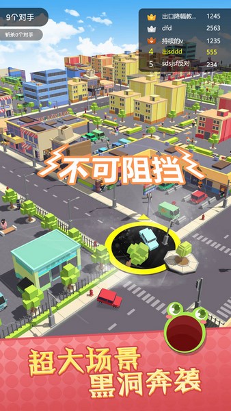 3.为了在竞争中占据主动,你需要通过滑动屏幕将自己控制的黑洞移动至可以吞噬的物体下方进行吞噬。树木,路标,建筑……凡是在场景中出现的物体都可以吞噬,包括其他黑洞。