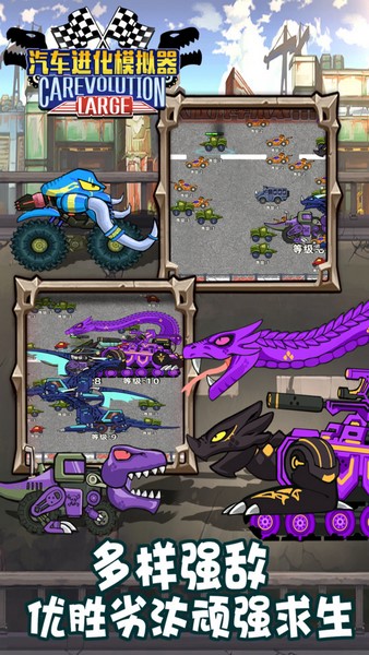 2、不同的车辆进化方式,让你的游戏挑战内容更加的丰富,可以获得不同的能力,让你轻松的战胜对手。