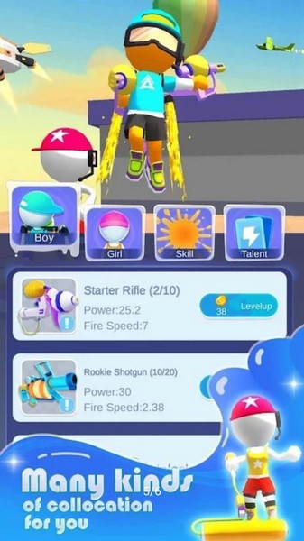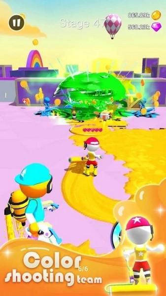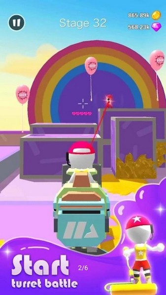 2、海量的关卡设计等待玩家来挑战,不同的关卡的上色区域面积和地形也都不同,你需要选择相对应的武器来更好的射击;