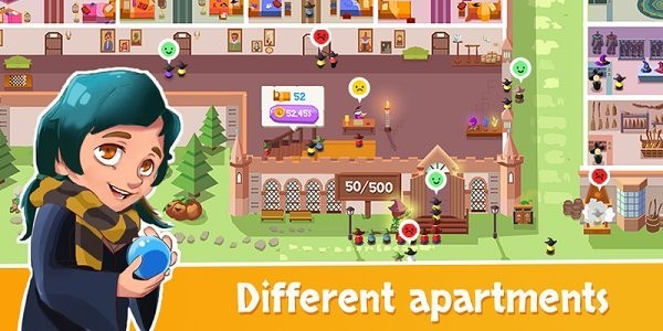 ❖ 发布广告招募新生,扩建宿舍,解锁新的课程来扩建你的魔法学校。