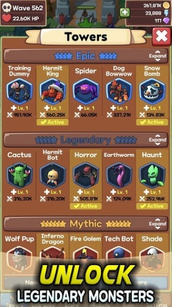 6、通过一次放置多达 10 个怪物塔来制定战略。确定他们的元素技能和被动提升的最有效组合将使您在数周内保持娱乐和投机!