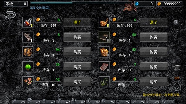 1、进入到地狱之窟手机官方版后,咱们有很多的金币,有钱就是任性先去商店大买特买