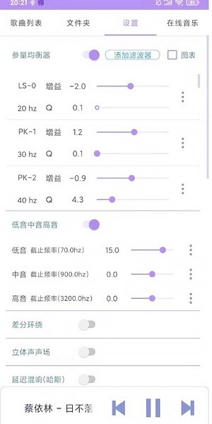 1、在若可音乐可以实现自定义n段的高级参数均衡器,自定义滤波器类型、频率,并且带有带宽控制(q)。