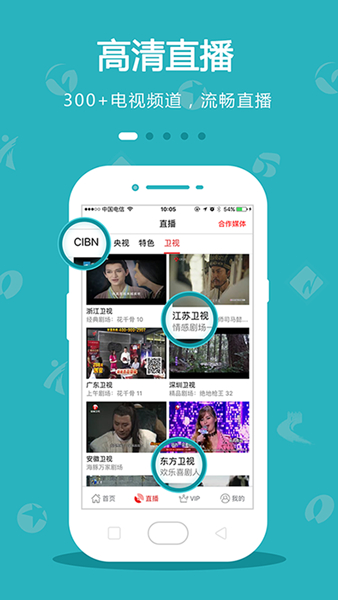 看直播 :CIBN手机电视既有中央电视台、浙江卫视、东方卫视、江苏卫视、湖南卫视等各大卫视频道的在线直播,一秒换台不卡顿,高清频道更流畅,时移回看新体验!还有CIBN轮播频道,四海钓鱼、风云足球、劲爆体育等多个特色频道,许多特色内容,等待着你来发掘,更有美女直播、特色轮播、特色资讯,频道共计300+。