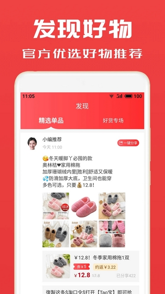 一键转发分享,邀请你的好友一起来进行优惠购物;