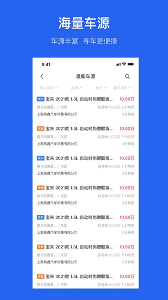 1、众多车源不定时更新推送,用户可自行在应用中查看