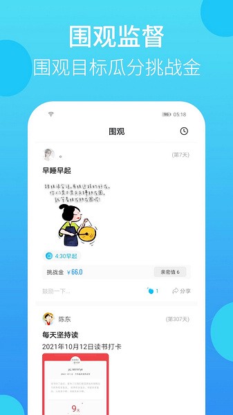 3、围观目标:您可以围观他人的目标,鼓励督促他人进步,围观后还有机会分得挑战金。
