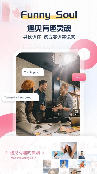 3.快速匹配,还能和外国的用户,在线的交流和沟通,互相来学习英语和汉语。