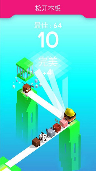 架木板是一款非常有趣的休闲小游戏,有着轻松的跳跃和点击玩法,玩家可以通过长按屏幕来调整木板的长度,从而使其能够正好连接两个平台,避免方块掉落。游戏有着丰富的方块角色和冒险场景可供玩家解锁,简约的画风和休闲的玩法模式,玩家们能够在这里获取全新的搭桥体验。游戏玩法简单,还有超多精美细节,能够为大家带来别样的趣味放置搭建乐趣。