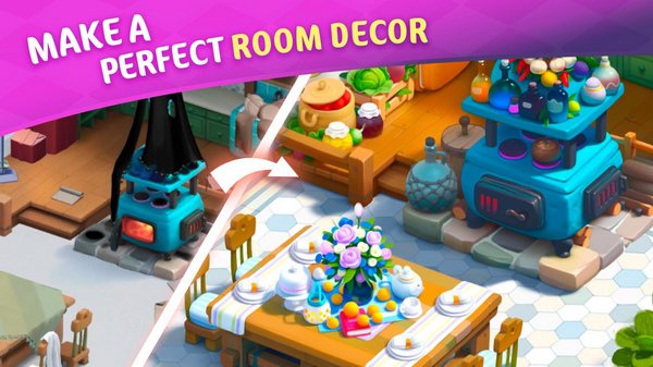 通过消除方块来获取金币,用金币去解锁更多的装修设备以及饰品。