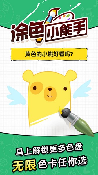 涂色小能手是一款非常适合儿童玩耍的涂色益智游戏,其中有大量的图画可以去完成。在这里我们不需要亲手画画,游戏中已经提供了完整的图案线条了,我们要做的就是在图案上填充颜色即可。选择自己喜欢的颜色涂在任意区域,通过多种颜色组合来搭配出你喜欢的配色。另外这些图画都非常简单可爱,很适合小朋友玩耍。