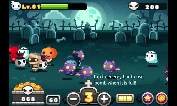 - 购买不同的道具可以有效的帮助自己去进行挑战,强大的炸弹可以轻松的消除场景当中的所有怪物;