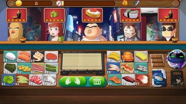 6、全新的寿司制作玩法,游戏中还添加了一些海鲜元素,轻松扩充你的店铺。
