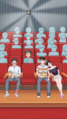 第五关 点击爆米花男生旁边的座位,获得贞子片子,然后点击放映室,将贞子的影片跟爱心影片进行对换即可。