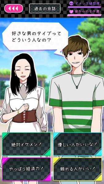 它是一款将「恋爱」与「逃脱」结合的新感觉手机游戏。 玩家需扮演使用交友应用的女性,揭露登场男性的真面目。不仅要在对话中作出回应,还可以在房间中探索,通过「电脑」「杂志」等搜寻情报。根据选项不同,会有多种结局。 “感觉最近心动的感受不足呀” 这么想着的我,迅速下载了一个交友App,等着那个帅气的“他”的到来! 不过,等等!好像不会有天上掉馅饼这种事情存在的吧 在房屋中寻找隐藏的证据,挖掘对方的身份吧! 逃脱游戏和恋爱游戏相结合的新式游戏! 你能到达最后吗?
