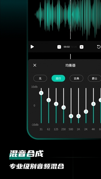 应用内置流行、古典、爵士、摇滚、R&B、民谣、舞曲和中国风八种混音模式,让你体验不同音乐风格。此外,独特的人声分离功能,让音频中的人声和伴奏清晰分离,让音乐更加纯粹。