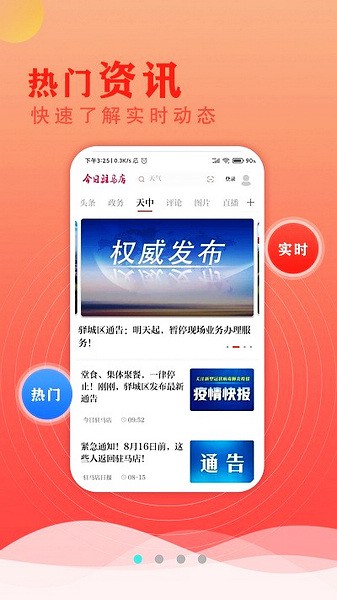 2.今日驻马店汇聚了海量的新闻资讯,可以随时在线阅读;不仅有新闻资讯,还有丰富的便捷服务。