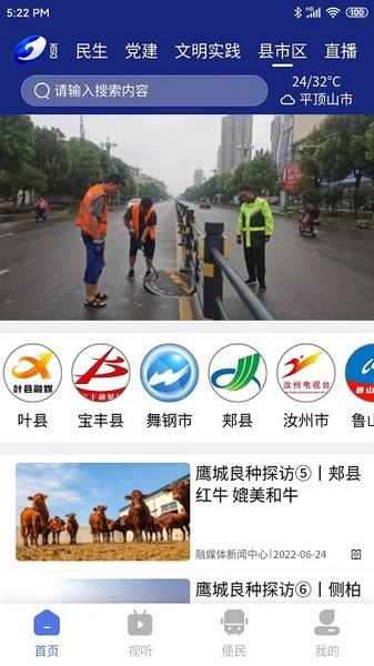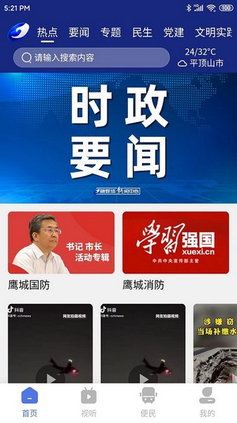 《鹰城新闻》客户端是平顶山市广播电视台自主研发的融媒体新闻旗舰产品,是平顶山市广播电视台在媒体融合探索道路上迈出的又一重要步伐。作为平顶山市新闻资讯的重要发布平台,开设新闻、短视频、直播、问政等多个特色栏目,提供平顶山市广播电视台全部频率频道的同步直播和在线点播服务。同时,通过《鹰城新闻》客户端,打通各县级融媒体中心,与县市区互联互通,共同聚焦最新资讯,坚守媒体责任,传播主流声音。实现多栏目即时互动,发挥党媒势能,打造网络舆论主阵地。