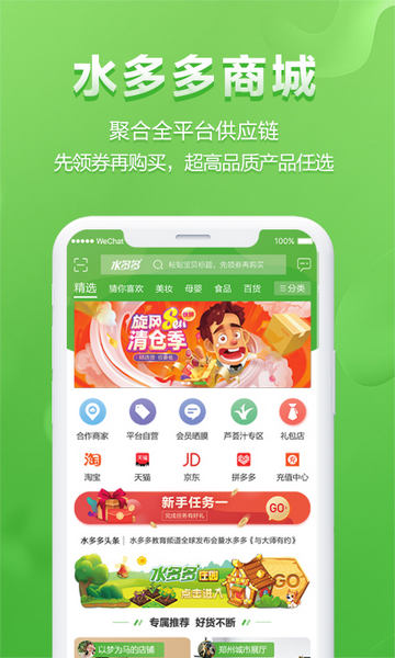 水多多app是一款优惠超多的电商平台,用户能够在这里享受海量优惠内容,还能和好友一起拼团购物。软件涵盖美妆、百货等多品类产品,大家能够在这里买到日常生活所需的各种实惠商品,物美价又廉。平台还会每天实时更新优惠信息,让大家能够买到既心仪又实惠的物品。这里还有超多主题活动信息,大家可以自行报名参加。作为一款专业的美妆电商平台,水多多致力于为大家带来真正优惠、实用的产品。