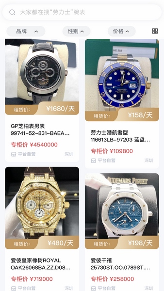 2、含有日租、月租多种租用手表的方式,用户可以自行选择租用;