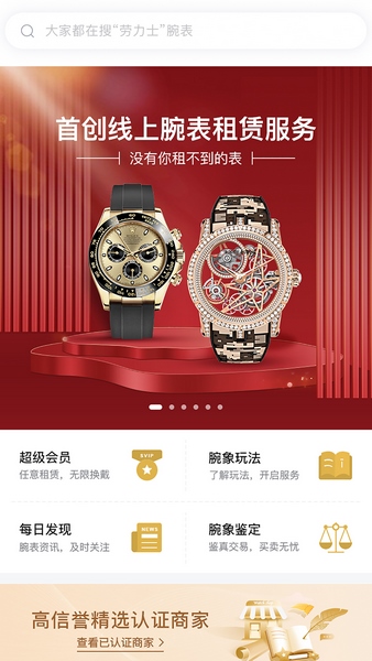腕象APP是一款非常方便的手表租赁和购买软件,汇集了各种大牌手表,满足不同需求。你可以随时查看最新的手表款式,并选择租用或直接购买。特别的是,平台还提供鉴定服务,确保每款手表都是真品,让人买得放心。