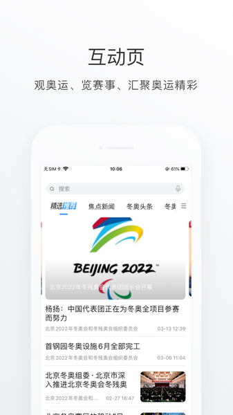 2、阅读各种关于冬奥会的文章资讯,从互动文章资讯中找到感兴趣的文章即可打开阅读;