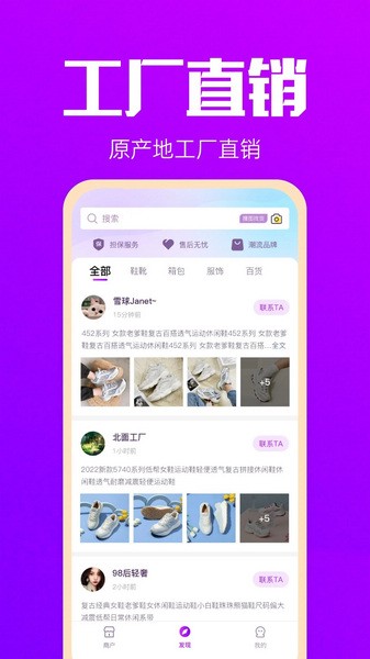 入驻拿货网的商家自行发布商品,找货批发直接面向厂家,公开多种联系方式。