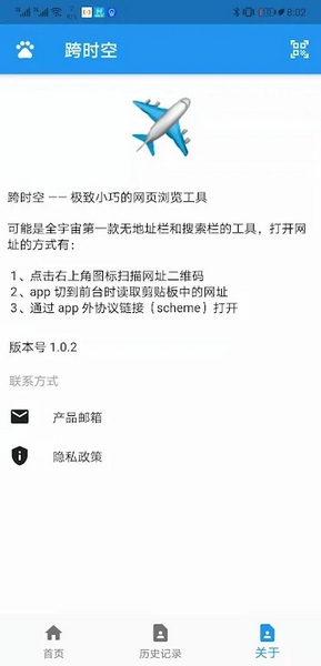跨时空app是一款极致简洁的浏览器手机软件,简单到甚至没有地址栏和搜索栏,比起常用的浏览器来说,它更像是一个快速打开页面的工具。它打开网址的方式有三种,分别是扫描二维码、读取剪贴板网址以及外协议链接。并且还可以将多个页面的内容都展现在一个屏幕中,通过这个特性我们还可以将各地的健康码都添加进来,这样将可以实现一键打开任意一个健康码了。