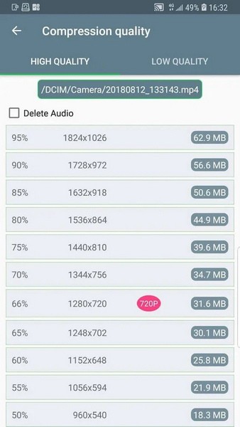 video compressor破解版是一款便利好用的手机视频文件压缩工具。这款软件可以让用户在手机中对视频文件进行压缩保存,操作步骤十分的简单,能够支持对各种格式类型的视频文件进行压缩。同时,软件提供多种规格的压缩,可以选择不同的压缩比例来处理文件,按照需求选择。本页面为用户提供高级版的破解版安装包。